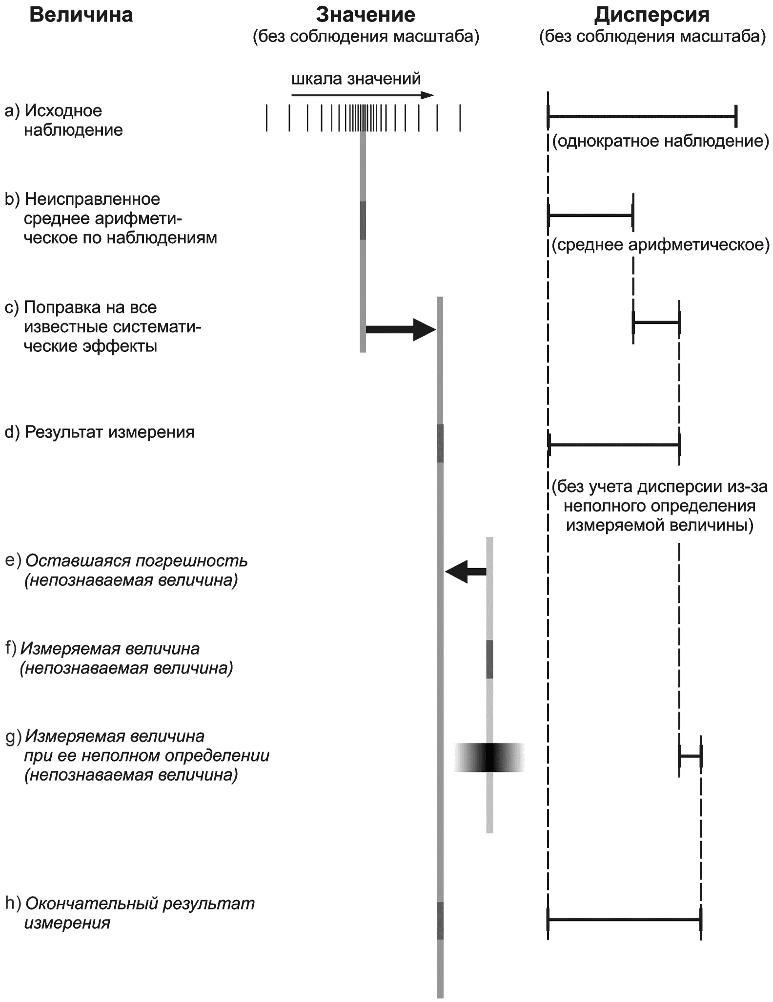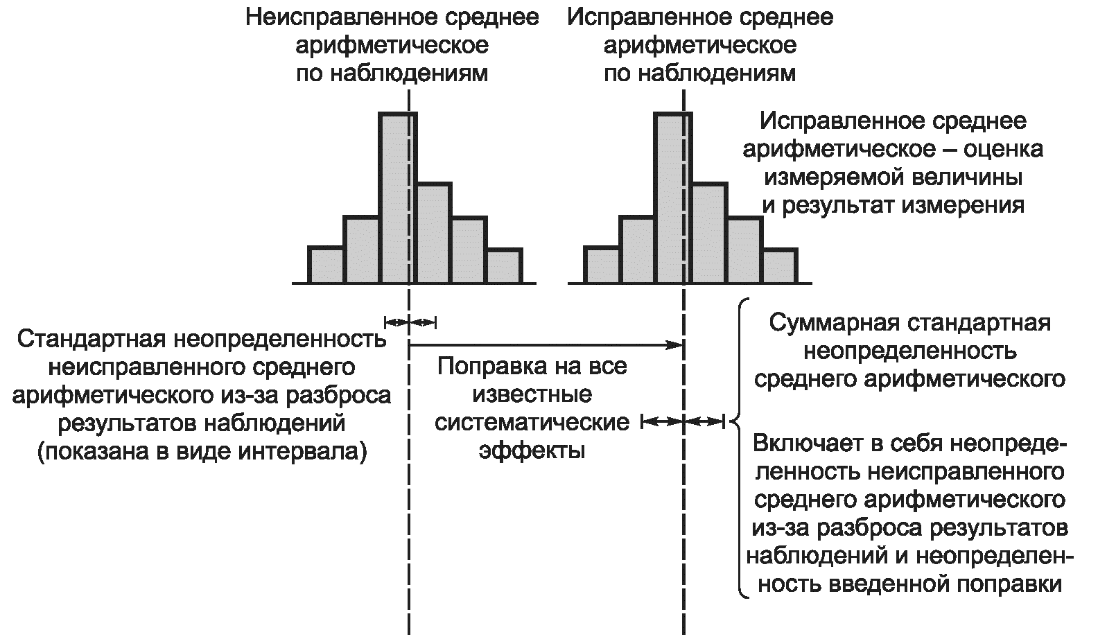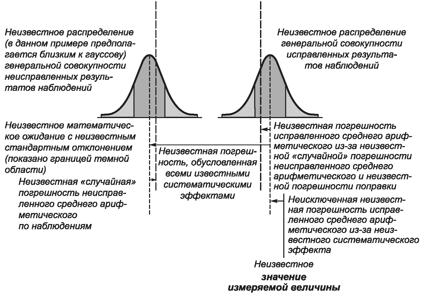 Сопоставление концепций погрешности и неопределенности измерения проиллюстрировано на рисунке ДА.1.