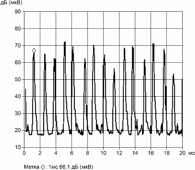 При измерении ИО, которое не создает медленно перемежающихся, неустановившихся или дрейфующих узкополосных помех, рекомендуется использовать детектор средних значений с полосой фильтра видеосигнала, например 100 Гц, т.е. небольшое время усреднения в течение процедуры предварительного сканирования. На частотах, где выявлено, что электромагнитная эмиссия близка к норме в средних значениях, рекомендуется проводить заключительное измерение с помощью фильтра видеосигнала с меньшей шириной полосы, т.е. с