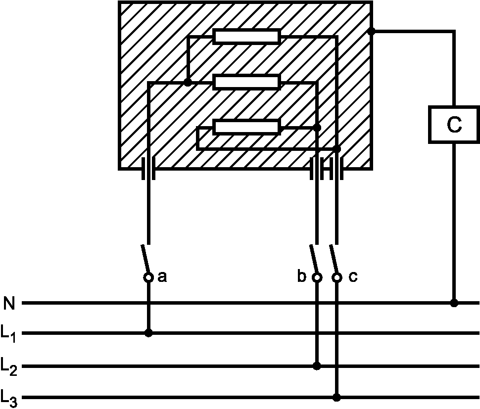 - максимальное доступное напряжение составляло менее чем, или равнялось ограничениям для БСНН/ЗСНН цепи (например, связанного с накоплением заряда на батарее в управляющем устройстве или избыточным постоянным током сети питания для резервного копирования), и