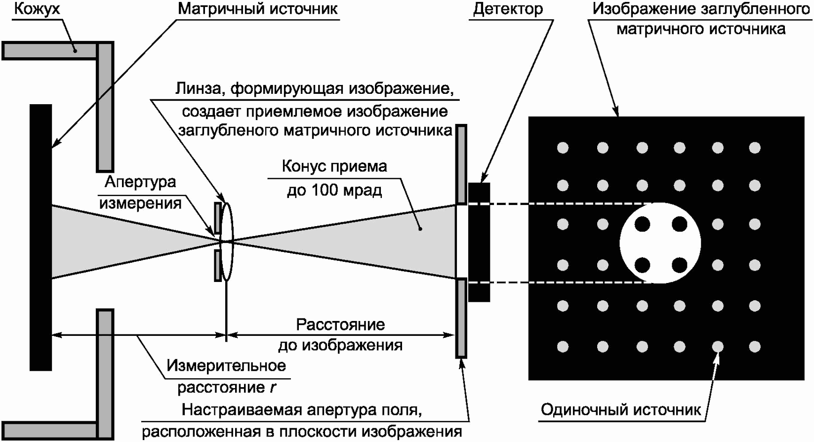 Необходимо рассмотреть конфигурации матрицы вплоть до размера 1 см или 4 источников (что соответствует максимальному углу приема 100 мрад при 100 мм).