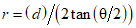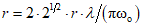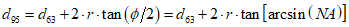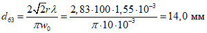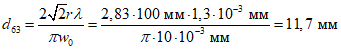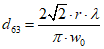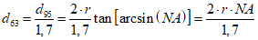 Диаметр при r = 2rNA/1,7 в точках (1 - 1/e) для Гауссовых пучков.