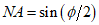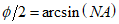 NA - числовая апертура выхода равна 0,2 при 1/e дивергенции 2·0,2/1,7 = 0,235 рад;