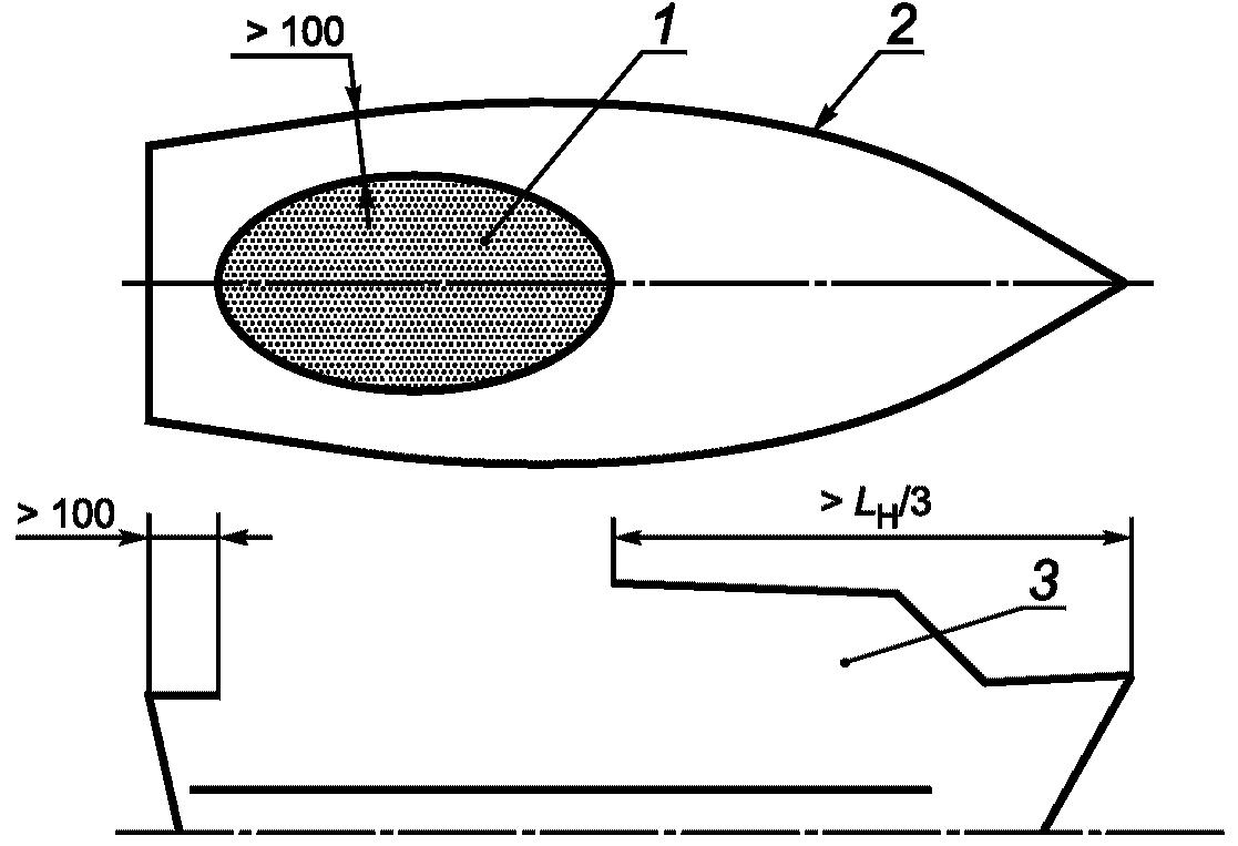 Пример - Кокпиты, ниши подвесного мотора, открытые объемы или пространства, ограниченные фальшбортами или комингсами.