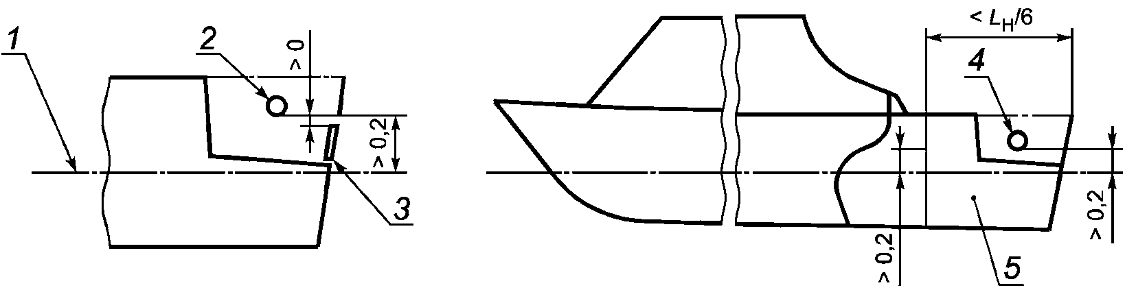Примечание 2 - Кокпиты, открытые в кормовой части, рассматриваются как рецессы. Палубы без фальшбортов и комингсов не являются рецессами.
