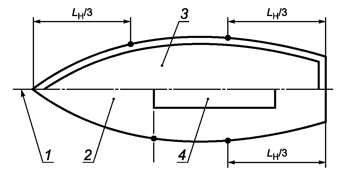увеличенное значение в носовой части (только варианты 1, 3, 5, 6) | м | >= | | |