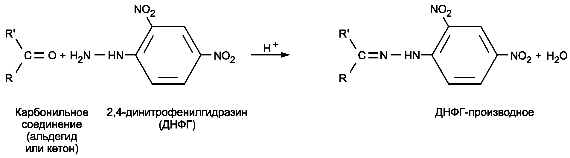 Рисунок 1 - Схема реакции карбонильных соединений с ДНФГ