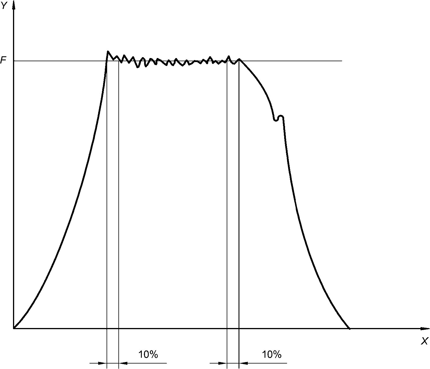 По графику в соответствии с ISO 6133 определяют медианное пиковое усилие F, необходимое для раздира образца.
