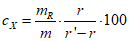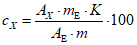 Массовую долю определяемого компонента cX, выраженную в процентах, вычисляют по формуле