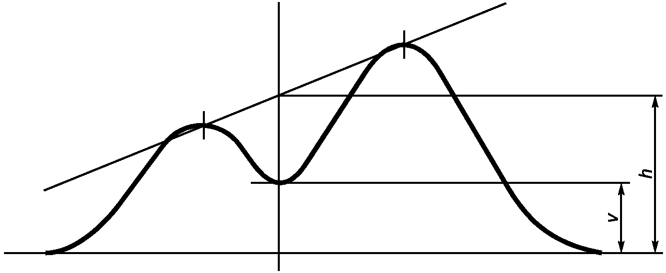 - расстояние между вершиной пика, индекс которого определяют, и вершиной пика нормального алкана с