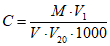 V20 - объем воздуха, взятый для анализа и приведенный к нормальным условиям, дм3, вычисляют по формуле
