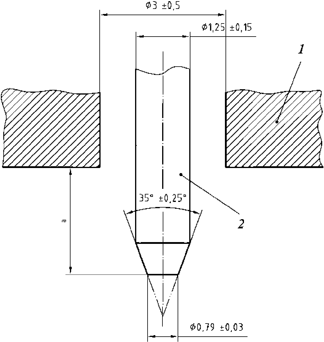 4.1 Опорная поверхность с отверстием диаметром (3,0 +/- 0,5) мм, центр которого расположен на расстоянии не менее 6 мм от любого края опоры.