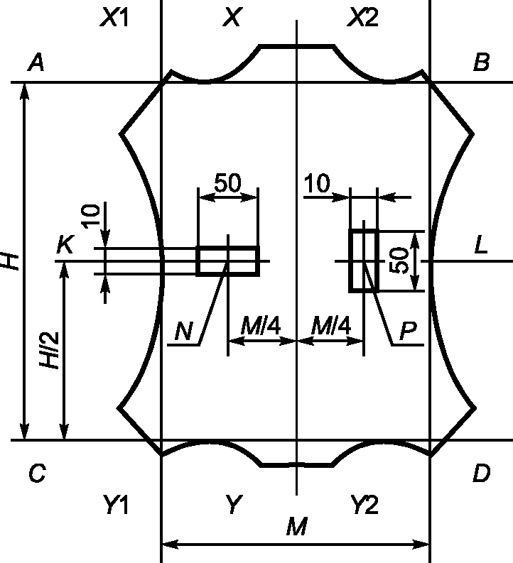 11. Для измерения толщины кожевой ткани в обозначенных точках выстригают волос на участке размером 5 x 5 мм. Толщину кожевой ткани измеряют толщиномером после кондиционирования шкурок. Результаты измерений регистрируют по форме