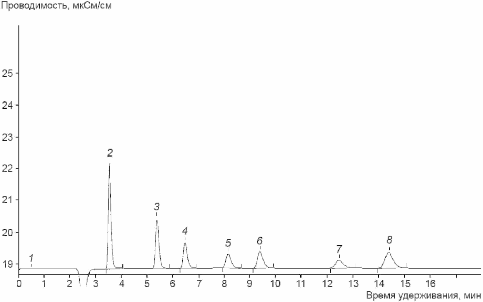 1 - кондиционирование; 2 - фторид; 3 - хлорид; 4 - нитрит; 5 - бромид; 6 - нитрат; 7 - фосфат; 8 - сульфат