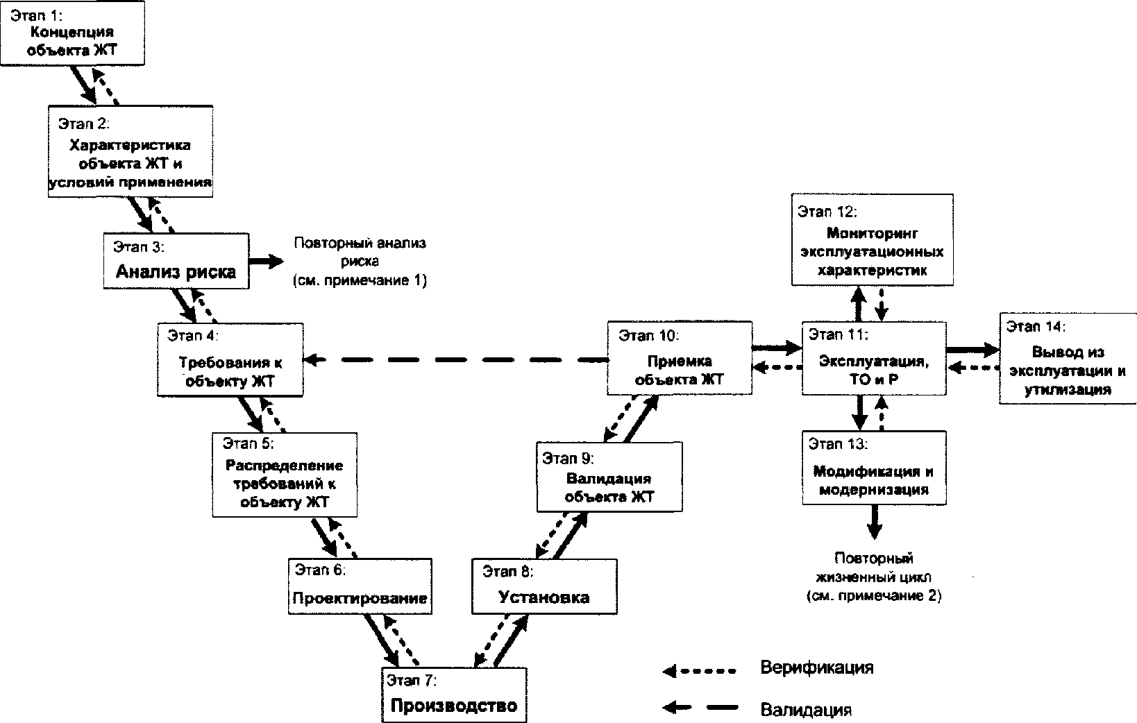 - верификацию и валидацию непротиворечивости изменений или модификаций, внесенных в объект ЖТ, требованиям надежности и функциональной безопасности и к СЖЦ;