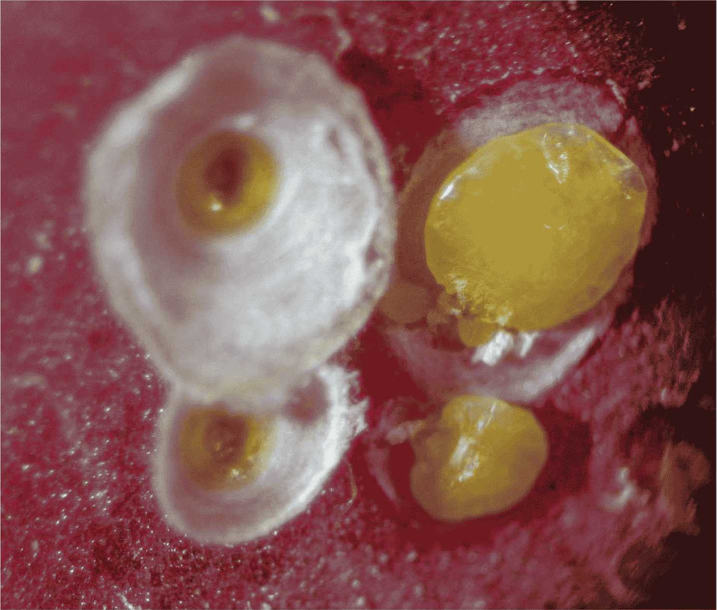 зимуют взрослые самки, а у желтой грушевой зимуют личинки второго возраста