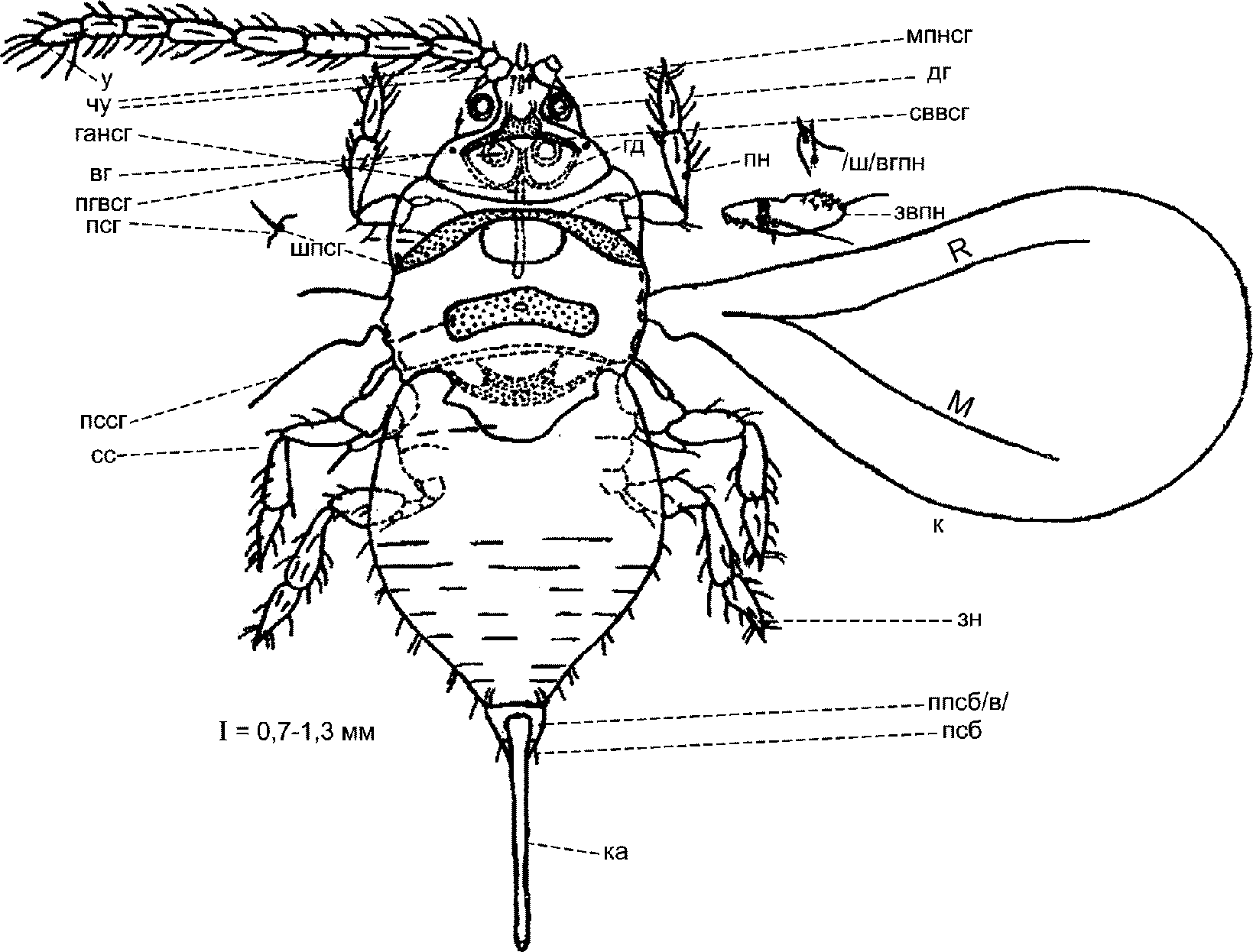 72 (71) Тело самки грушевидное, сильно расширенное сзади. Дорсальные железы