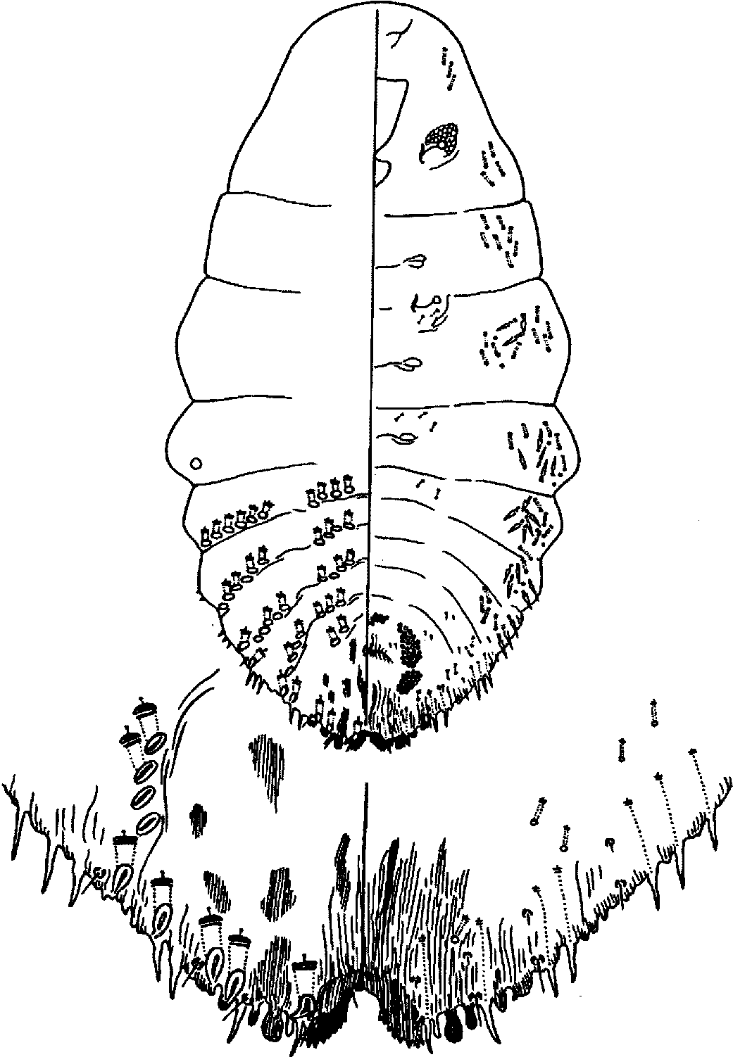 68 (69) Тело самки заключено в пупарий. Усики расположены у переднего