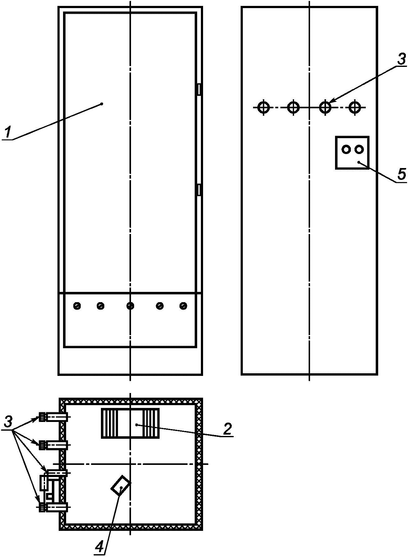 1 - термошкаф; 2 - нагревательный элемент; 3 - штуцера