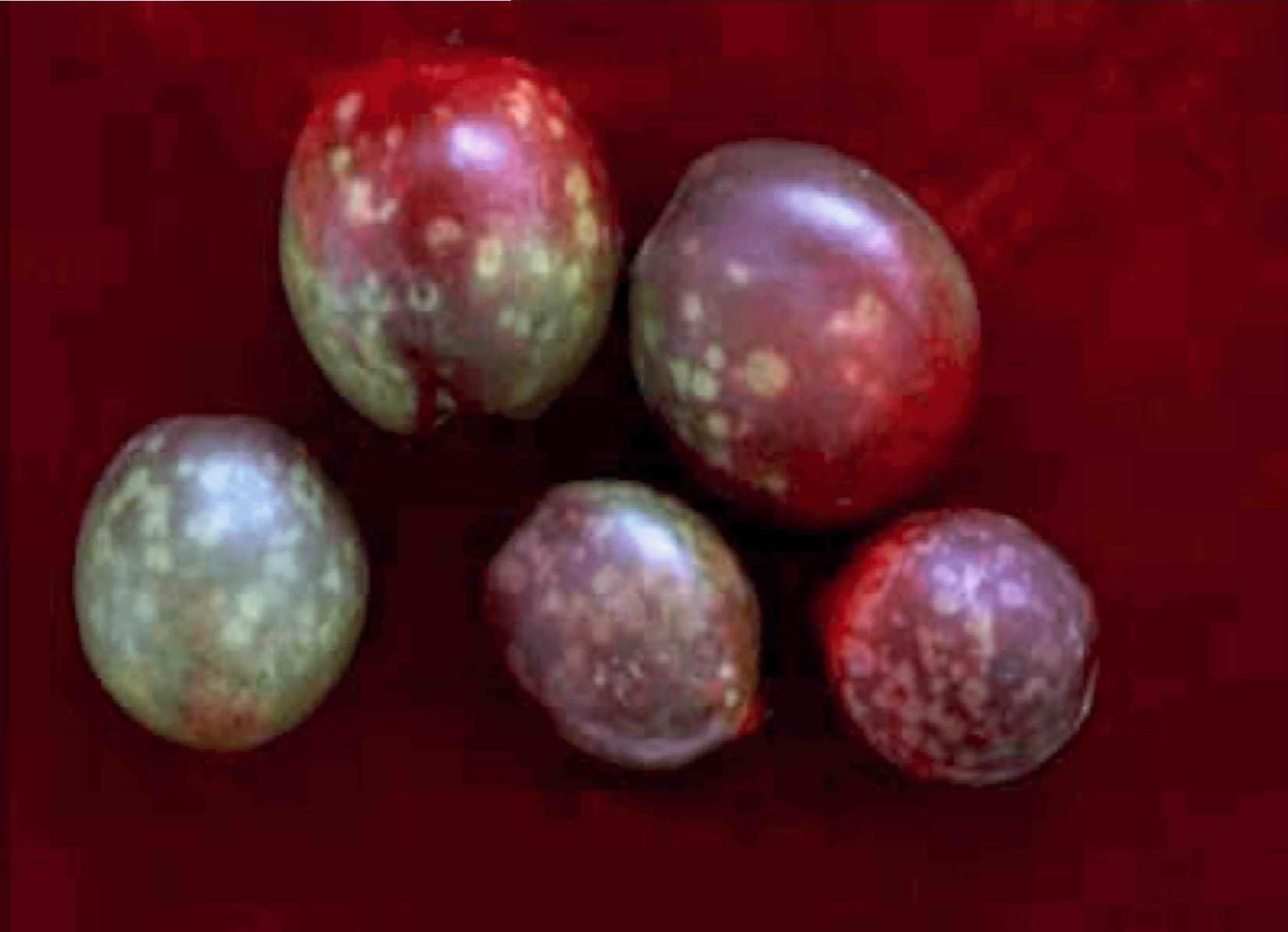 В цитоплазме зараженных листьев и плодов присутствуют протеиновые включения типа вертушек.