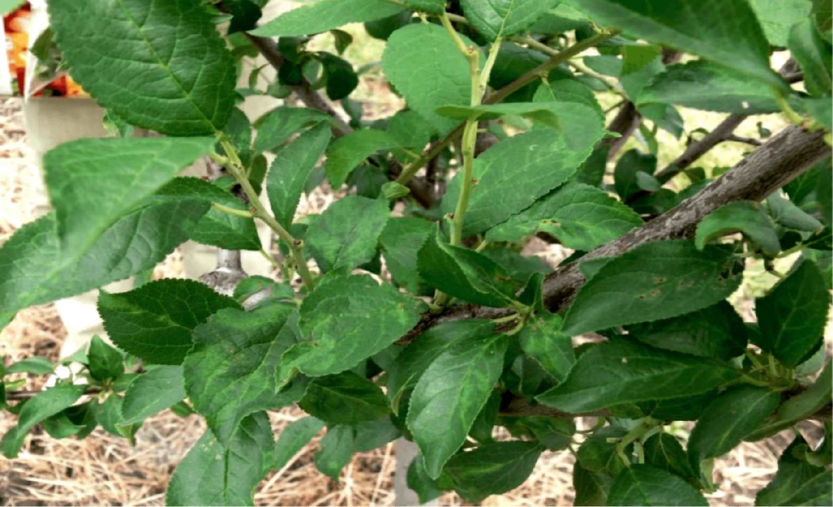 Рисунок В.2 - Листья сливы сорта Евразия-21 с симптомами