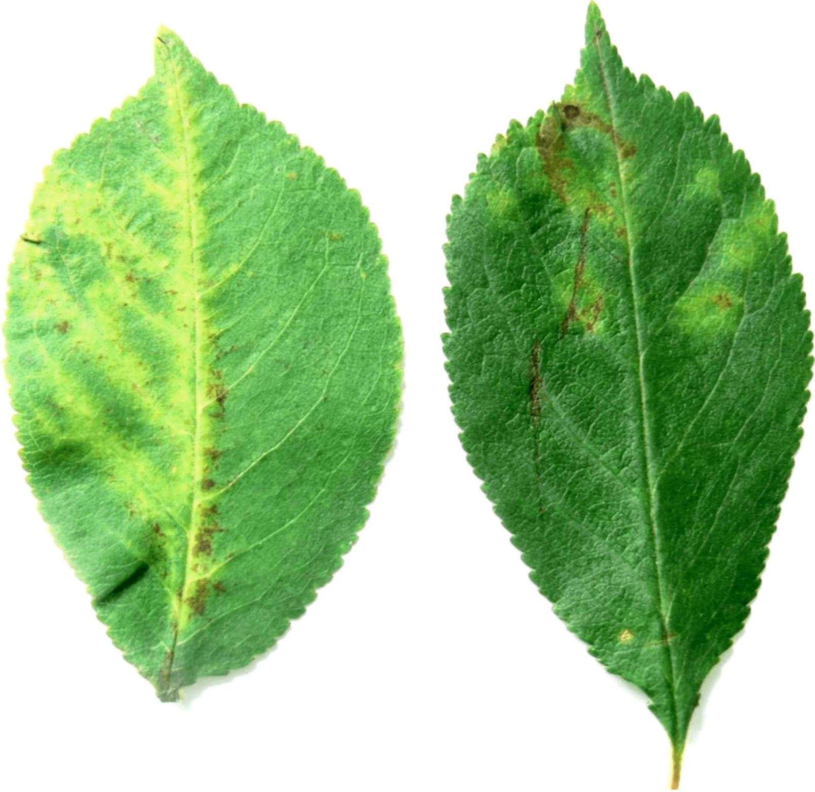 Рисунок В.11 - Листья вишни с симптомами шарки слив