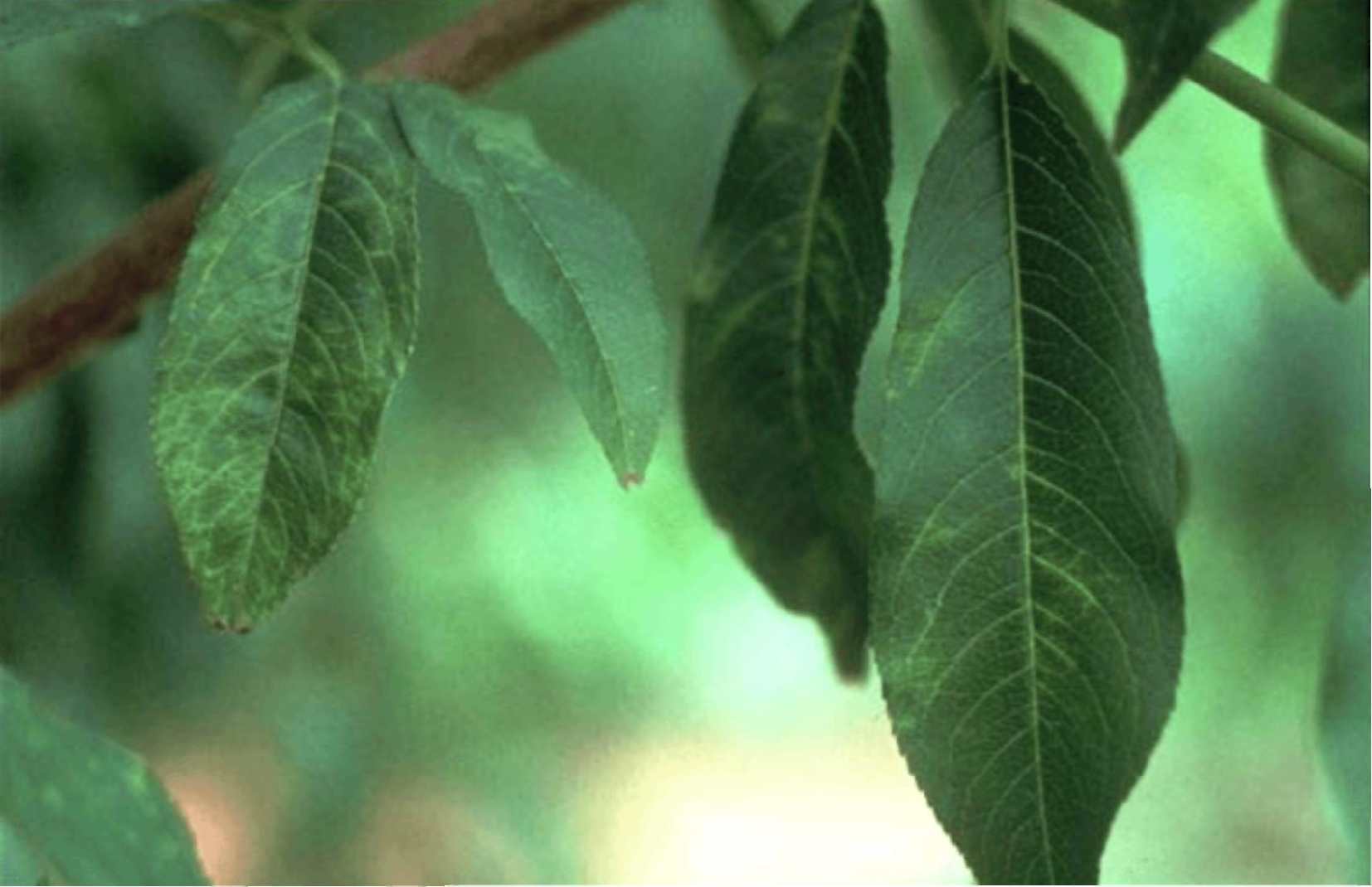Рисунок В.6 - Симптомы шарки слив на листьях абрикоса