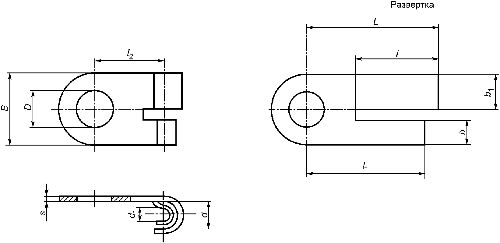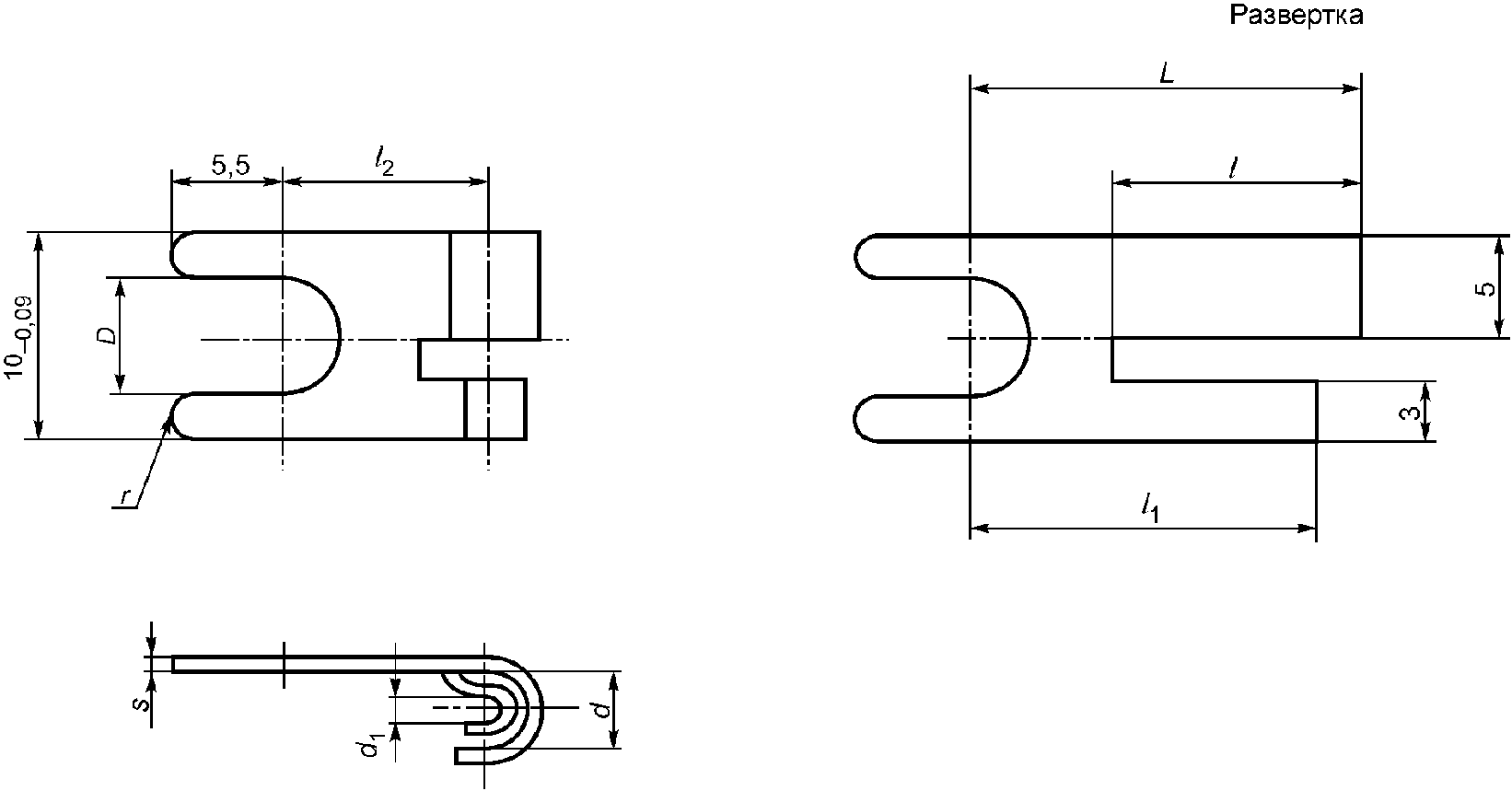 Примечание - Допускается при изготовлении наконечников типов 6, 7, 8 в виде цепи концы вилки делать под прямым углом без закругления радиусом r.