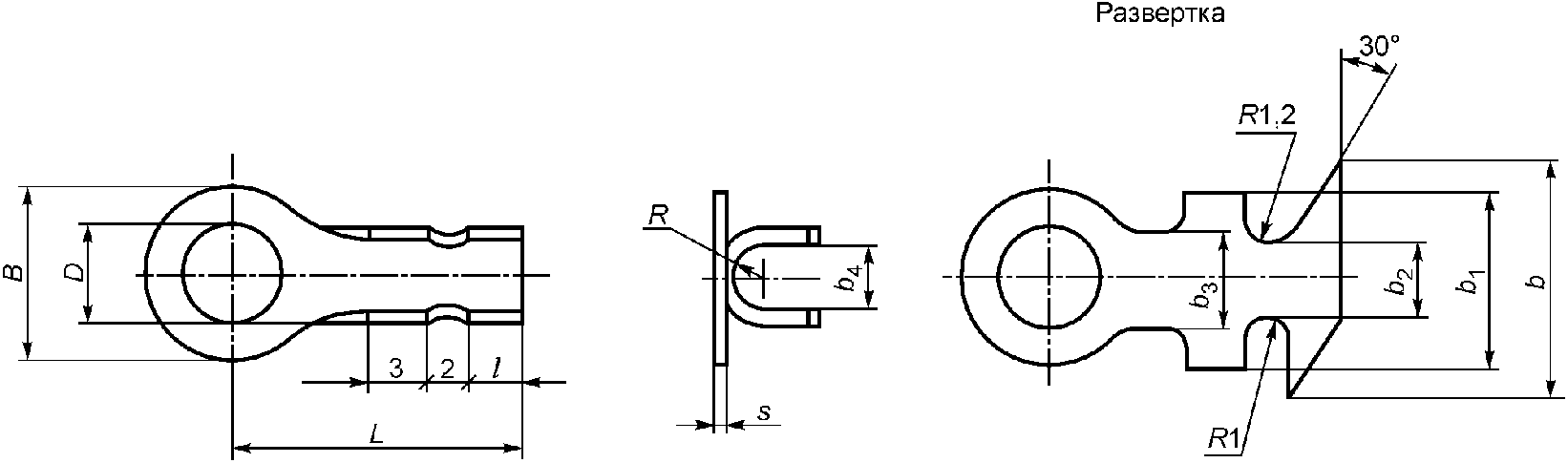 Сечение провода, мм2 | D | L | l | B | b | b1 | b2 | b3 | b4 | R | s |