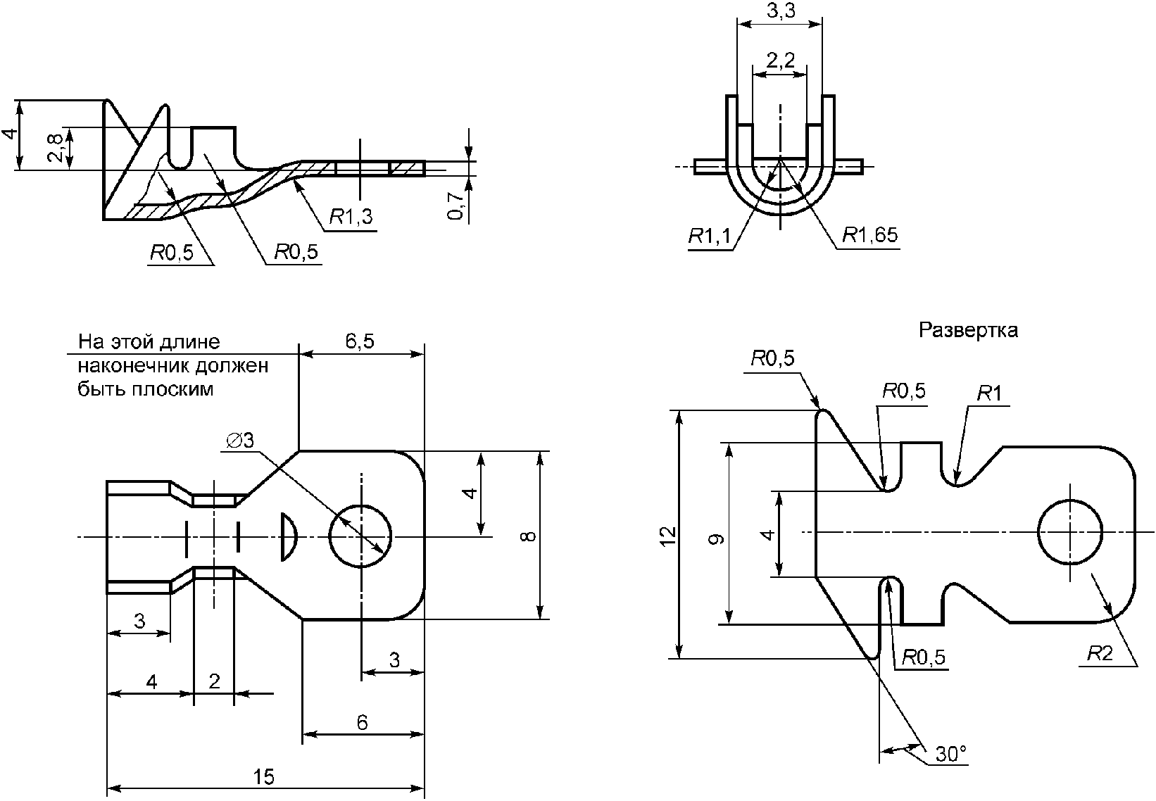 <1> Допускается изготовлять наконечник из ленты толщиной 0,8 мм. |