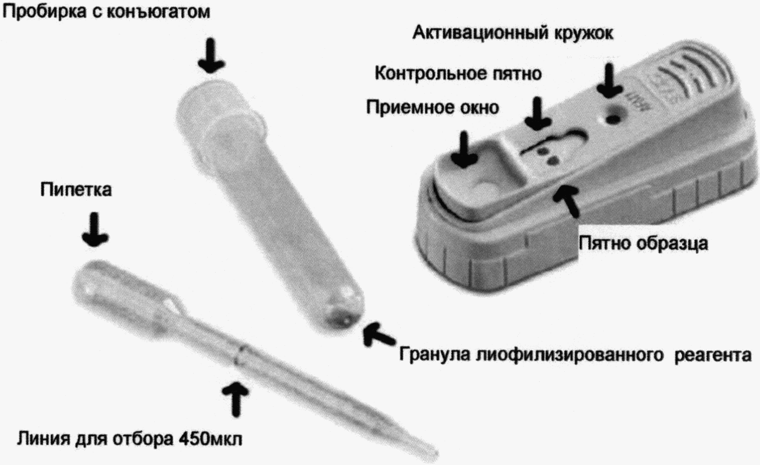 - пробирку пластиковую, содержащую гранулы конъюгата - лиофилизированного реагента;
