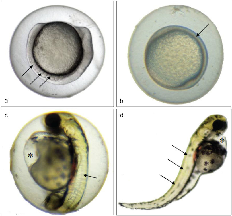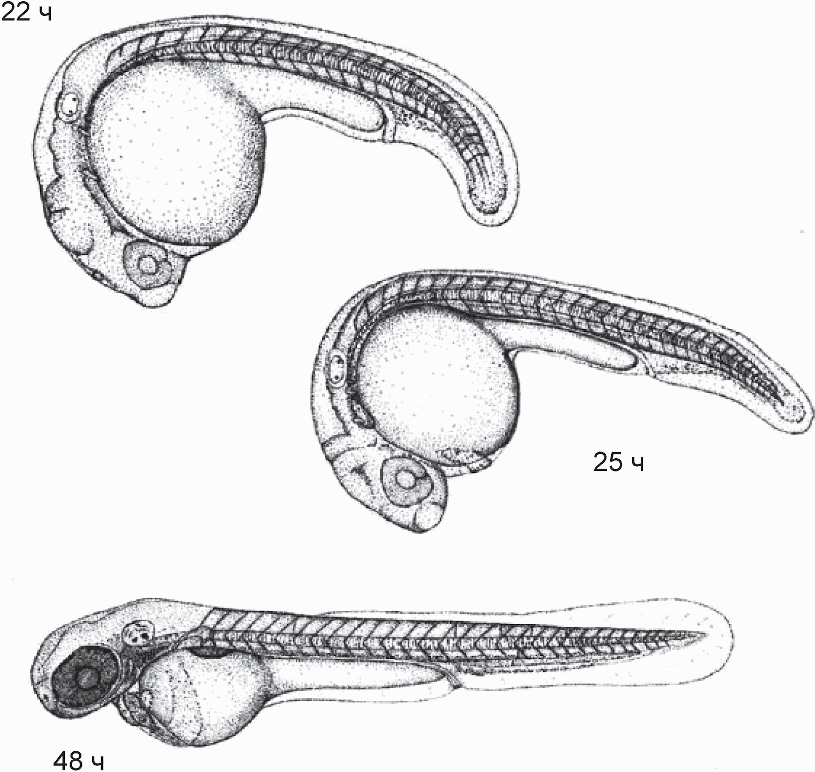 Только что оплодотворенную икру данио-рерио подвергают воздействию испытуемого вещества в течение 96 ч. Каждые 24 ч проводят не менее четырех основных наблюдений в отношении показателей гибели