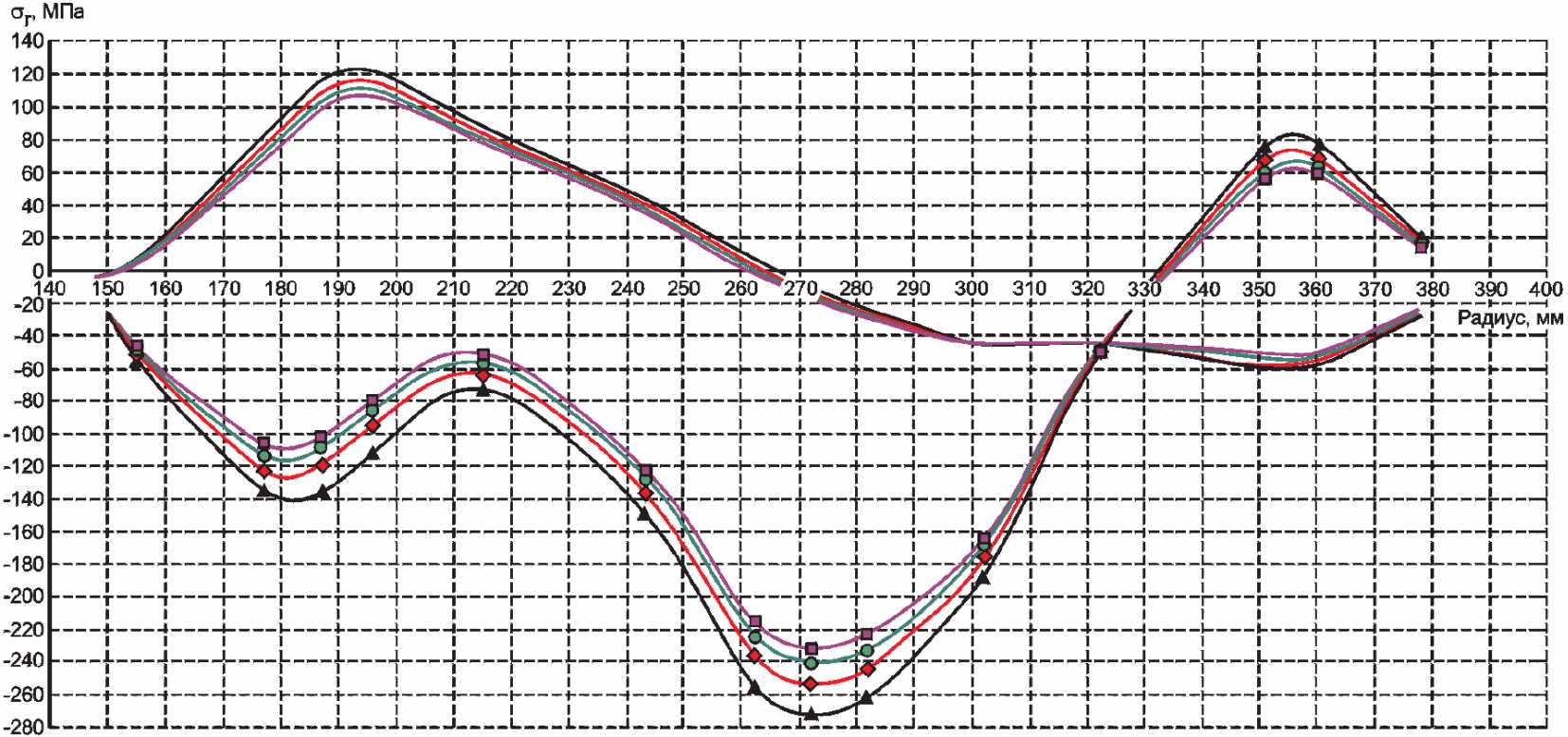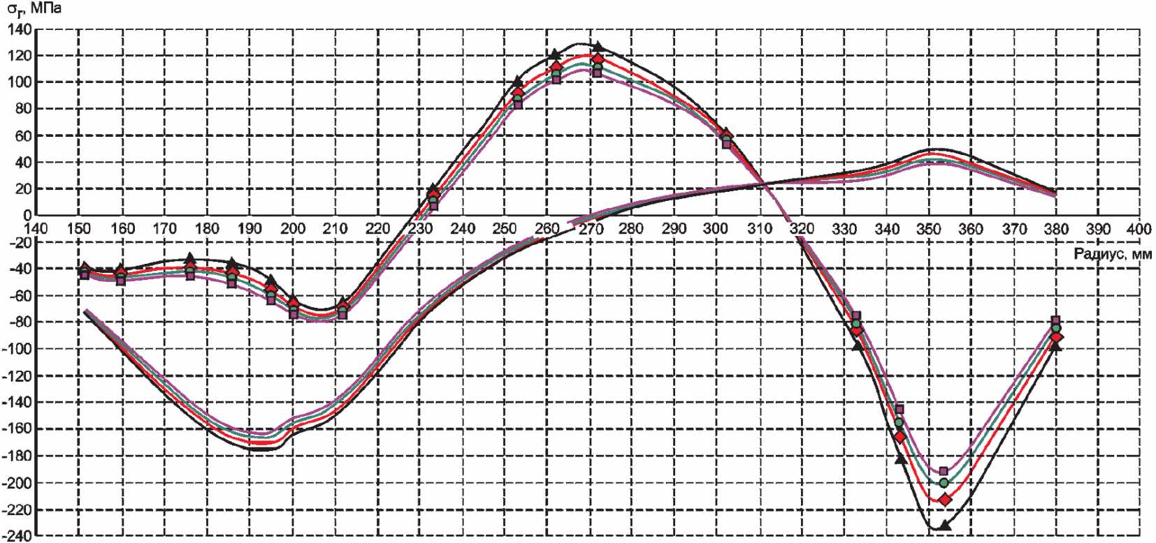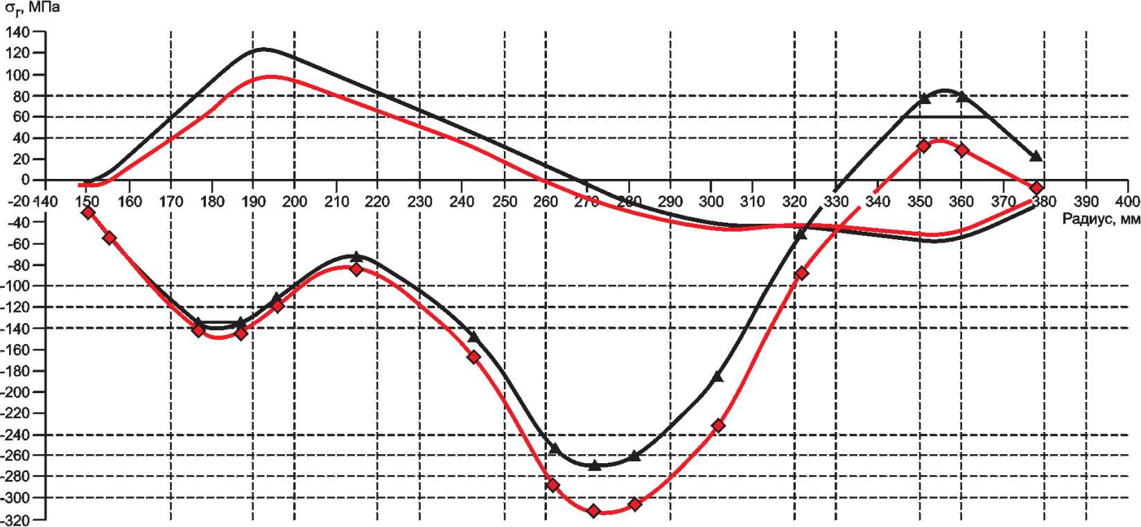 17 | Постоянные напряжения в испытуемой зоне (от запрессовки оси, насадки бандажа и др.) | |