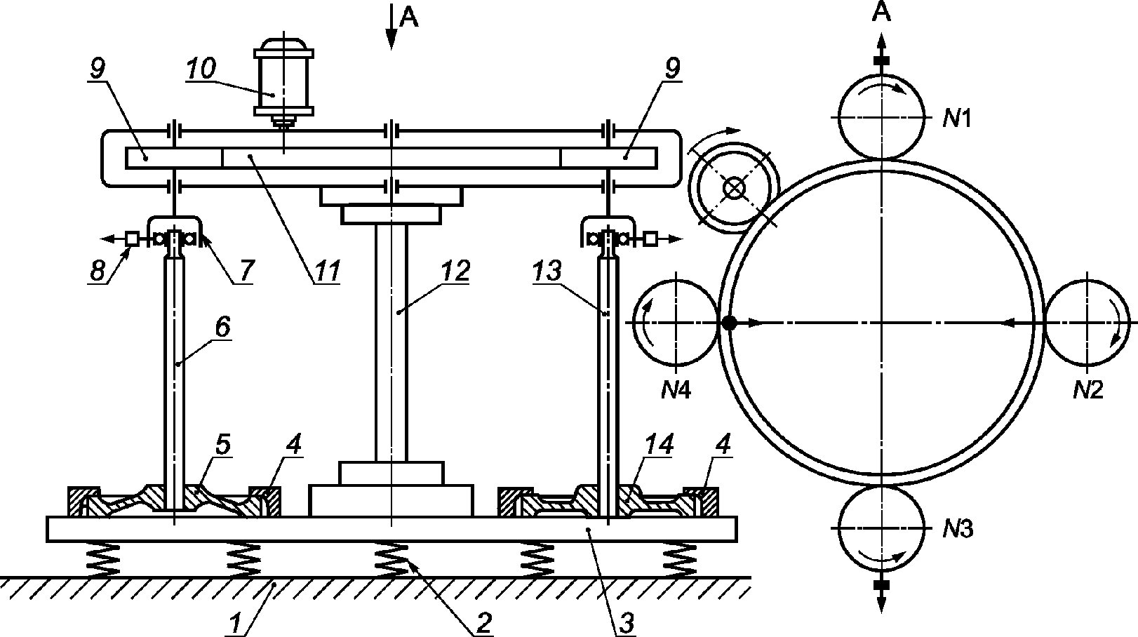 устройство; 4 - опытный объект; 5 - станина стенда;