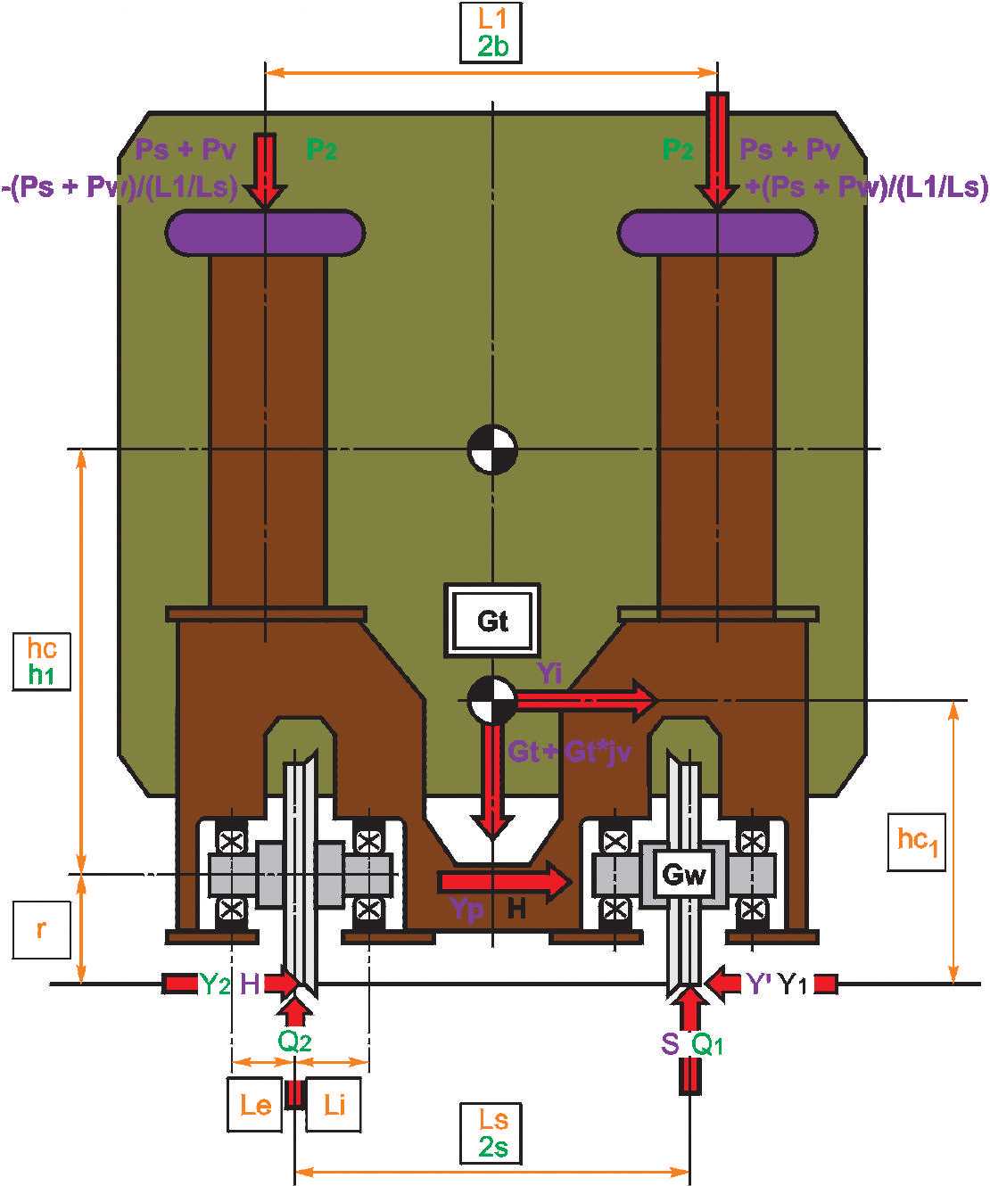3.3 боковые силы: Горизонтальные поперечные силы, вызванные вилянием экипажа, центробежными силами надрессорного строения при вписывании в кривые, силами инерции необрессоренных масс КП на горизонтальных неровностях пути.