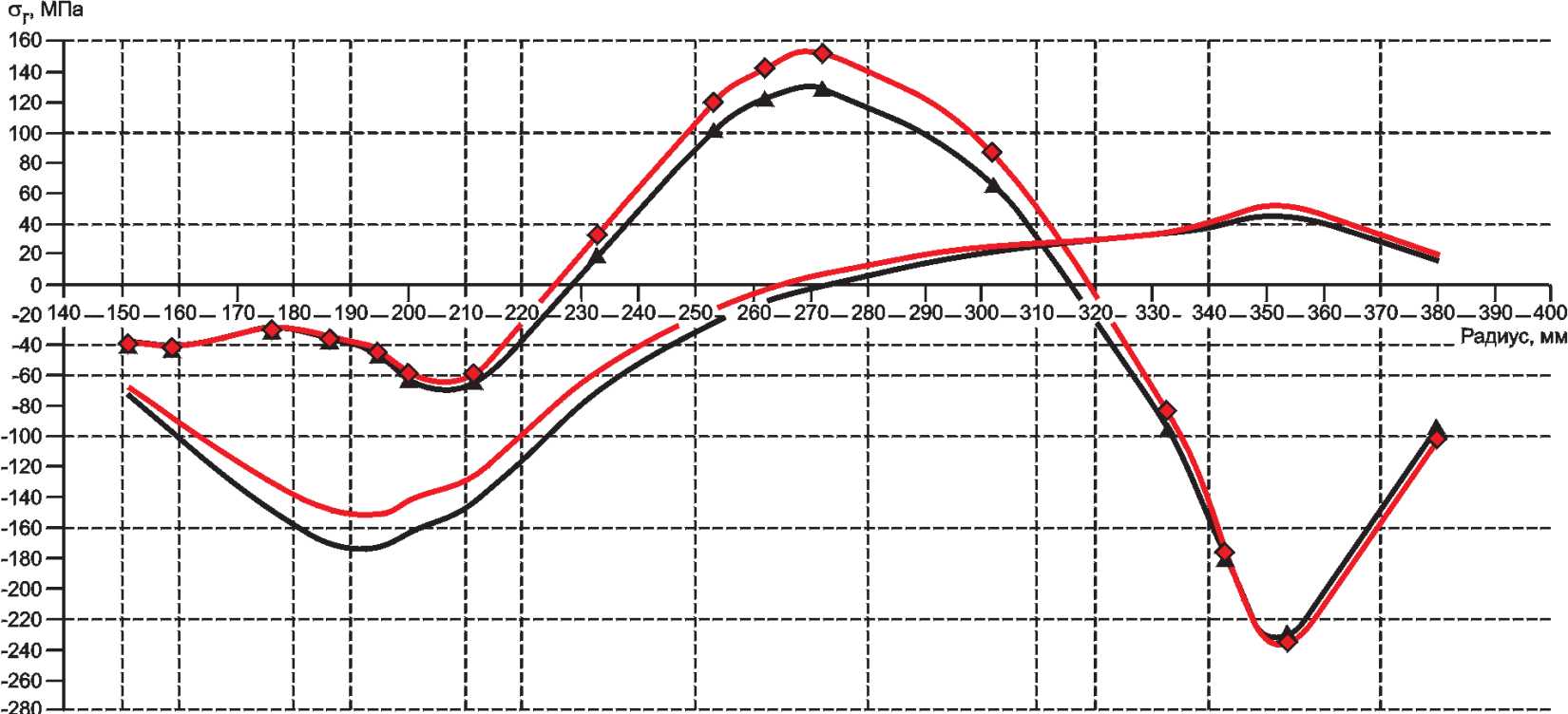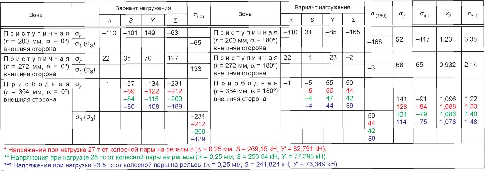 14 | Постоянные напряжения в испытуемой зоне (от запрессовки оси, насадки бандажа и др.) | |