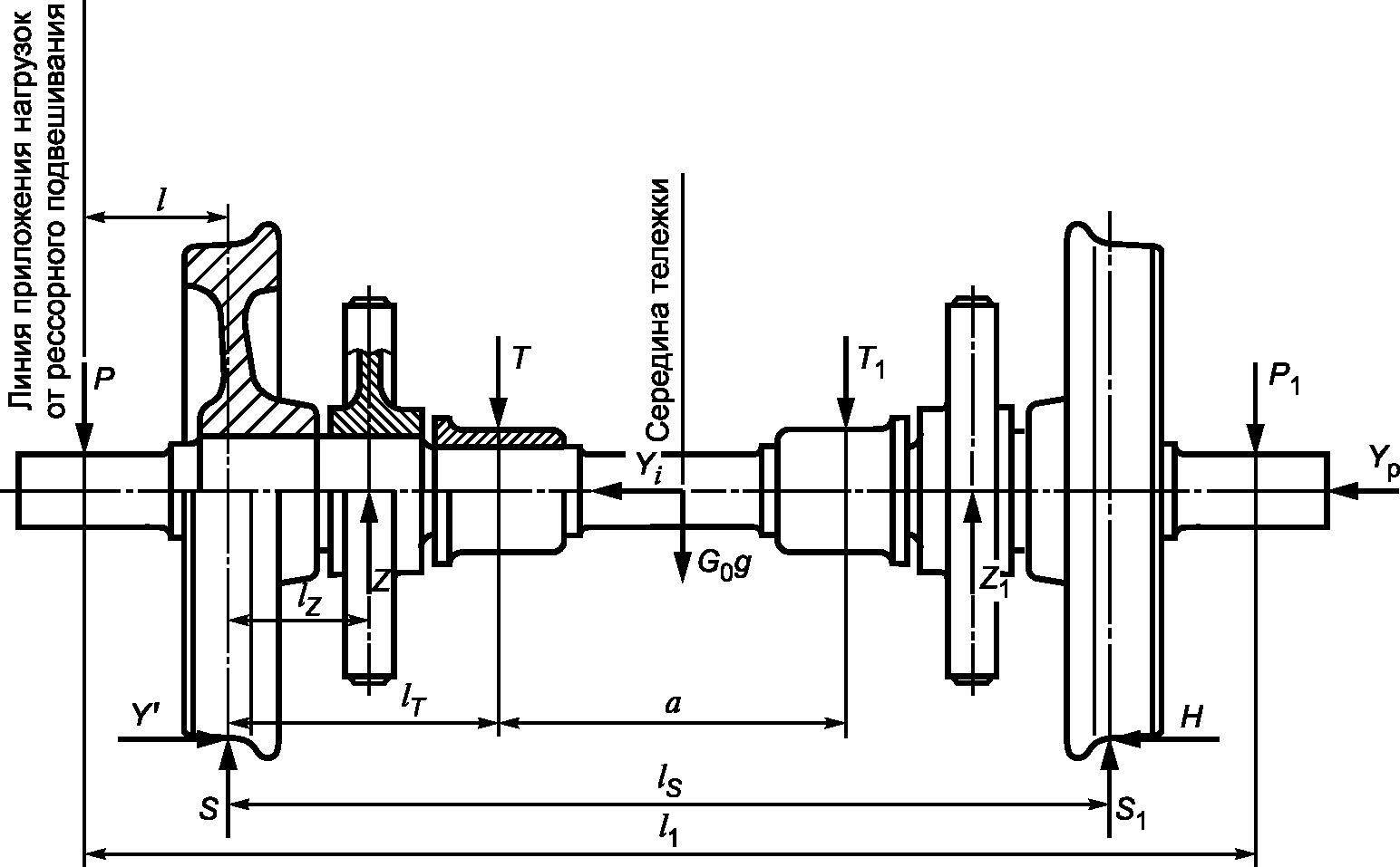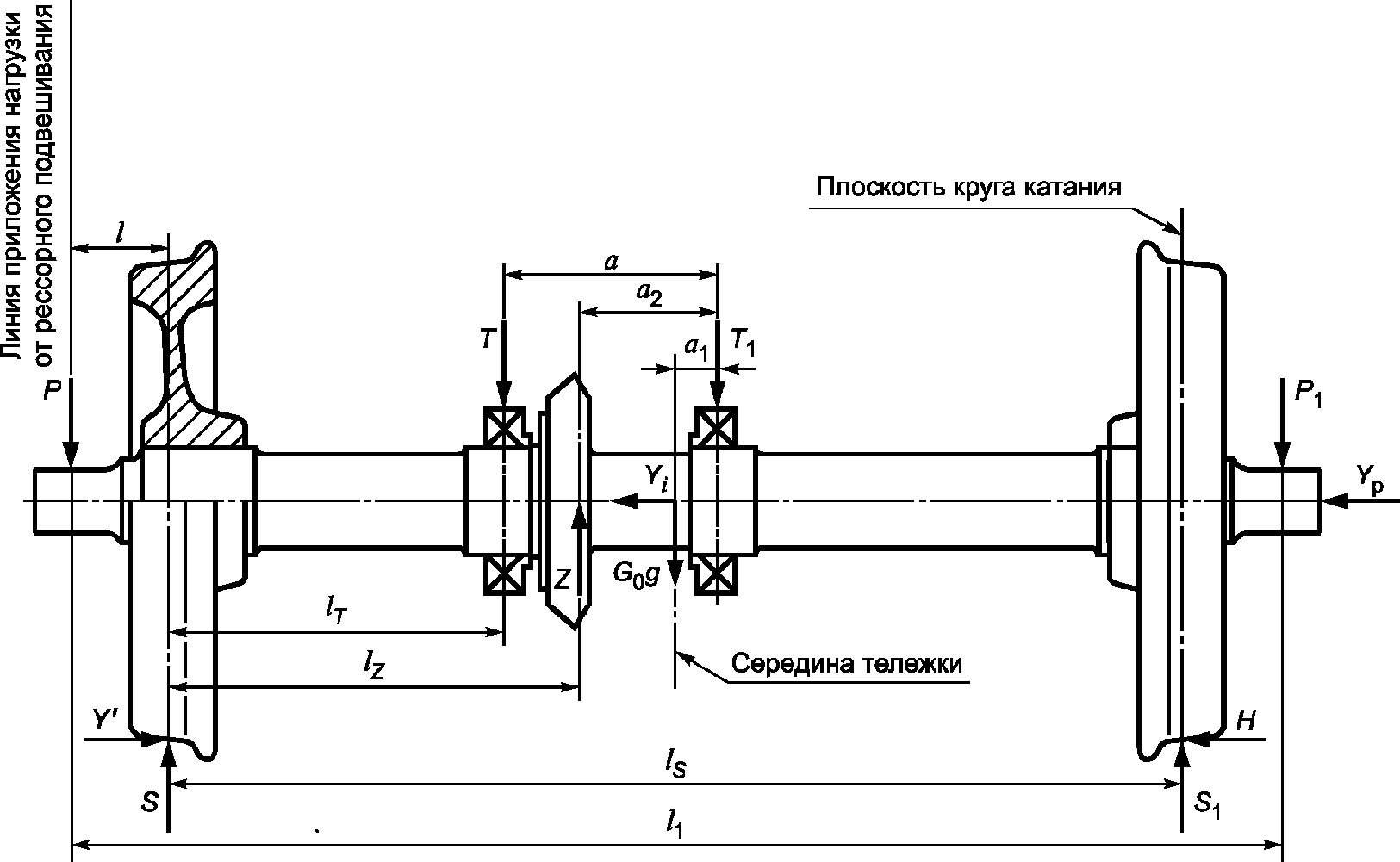 1 - испытываемое колесо; 2 - вспомогательная ось