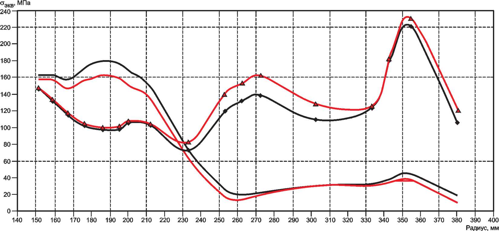 13 | Зоны с наибольшими напряжениями по проектному расчету НДС и возможного усталостного повреждения, определяемые для установки тензорезисторов | |