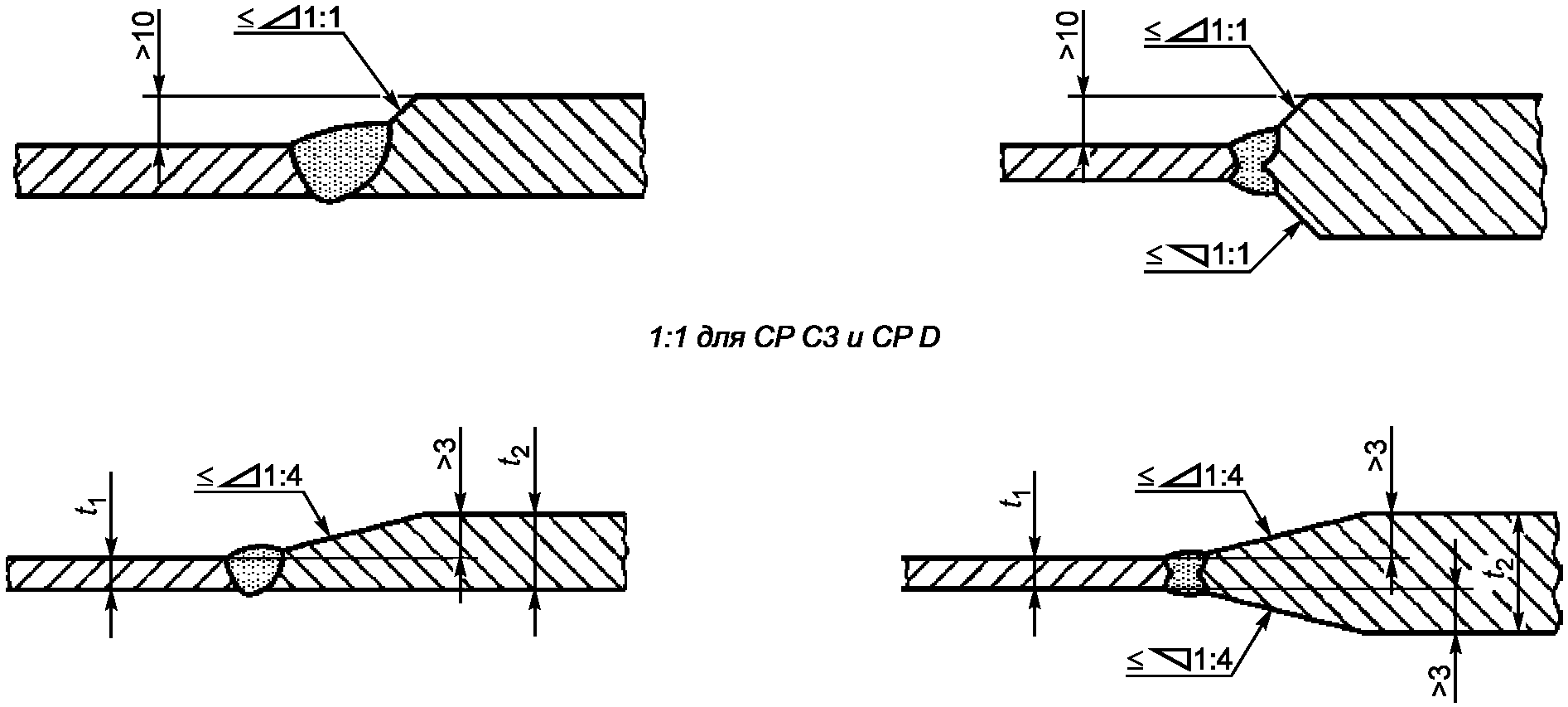 сварного шва CP C1, CP C2 и CP C3