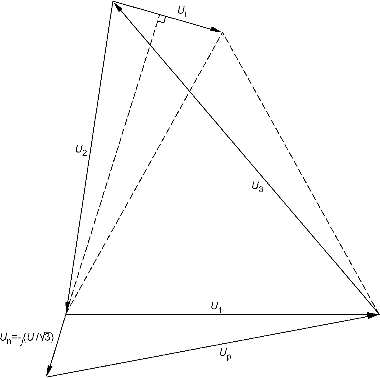 - Искомый вектор напряжения прямой последовательности Up соединяет вершины векторов Un и U1.