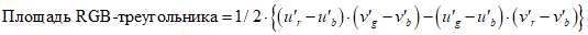 В случае проекционной системы, основанной на использовании трех основных цветов, площадь RGB-треугольника вычисляется по следующей формуле: