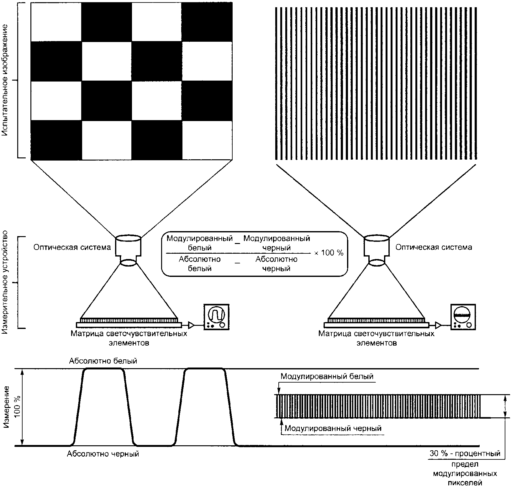 3.3 соотношение апертур (коэффициент заполнения) [aperture ratio (fill factor)]: Отношение светопропускающей/отражающей площади пикселя, умноженной на количество пикселей, к активной области наблюдения (светопропускающая область и область светоизоляции).