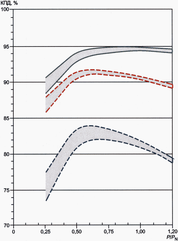 Рисунок A.1 - Пределы номинальных значений КПД для класса