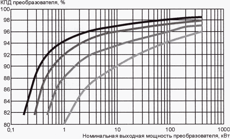 Для двигателей с номинальной мощностью 1 МВт и выше, которые обычно изготовляются по заказу, высокая экономичность всегда была одной из важнейших целей проектирования; их коэффициент полезного действия при полной нагрузке лежит в диапазоне от 95 до 98%. Заданный КПД двигателя обычно является частью контракта на его приобретение, и изготовителя ждут штрафные санкции в случае невыполнения контрактных обязательств. Это значит, что при назначении классов экономичности повышенные значения КПД отходят на второй план.