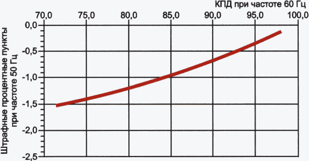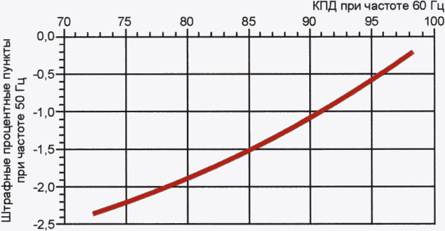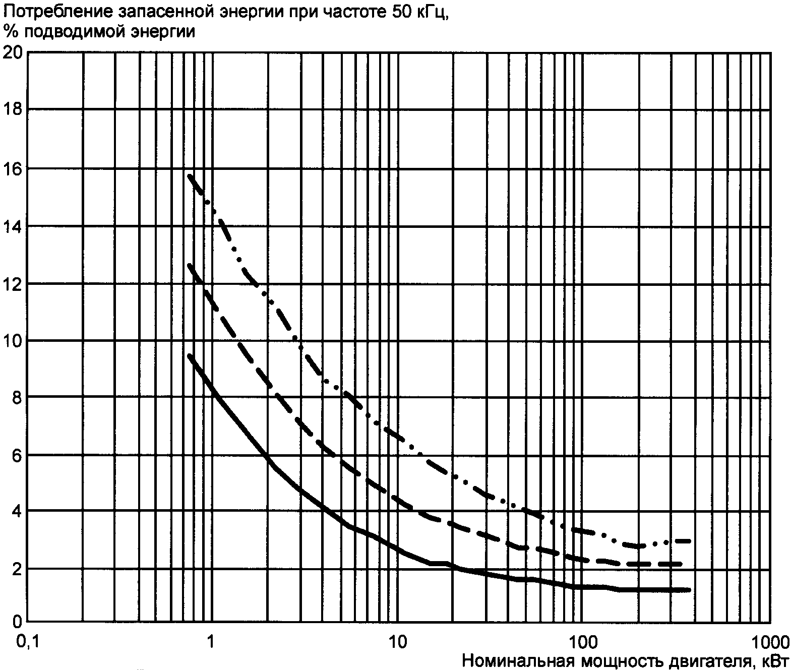 <a> Из-за наличия разрывов кривых 60 Гц для класса IE3 6-полюсных двигателей с выходной мощностью 1,1; 1,5 и 2,2 кВт kW предельные значения IE4, выведенные на основе гладких кривых (таблица A.2), оказываются несколько меньше значений IE3 (87,5% для 1,1 кВт и 88,5% для 1,5 кВт). |