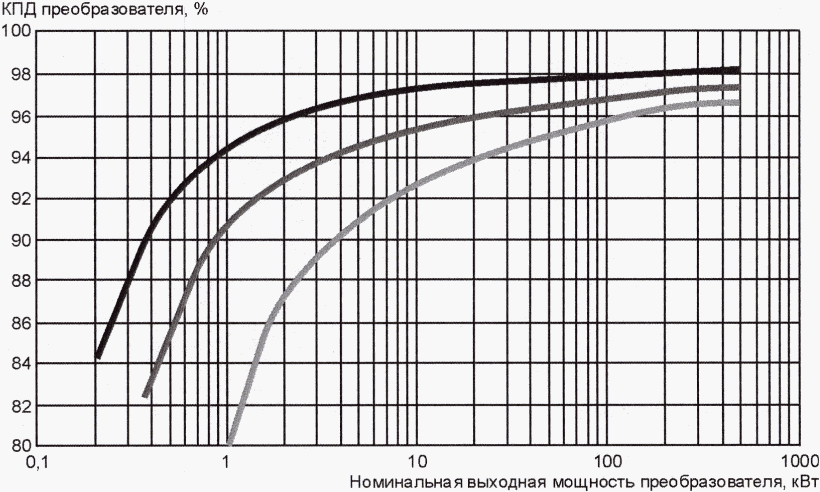 b) обычно КПД двигателей при полной нагрузке возрастает с увеличением их физических размеров и номинальной выходной мощности;