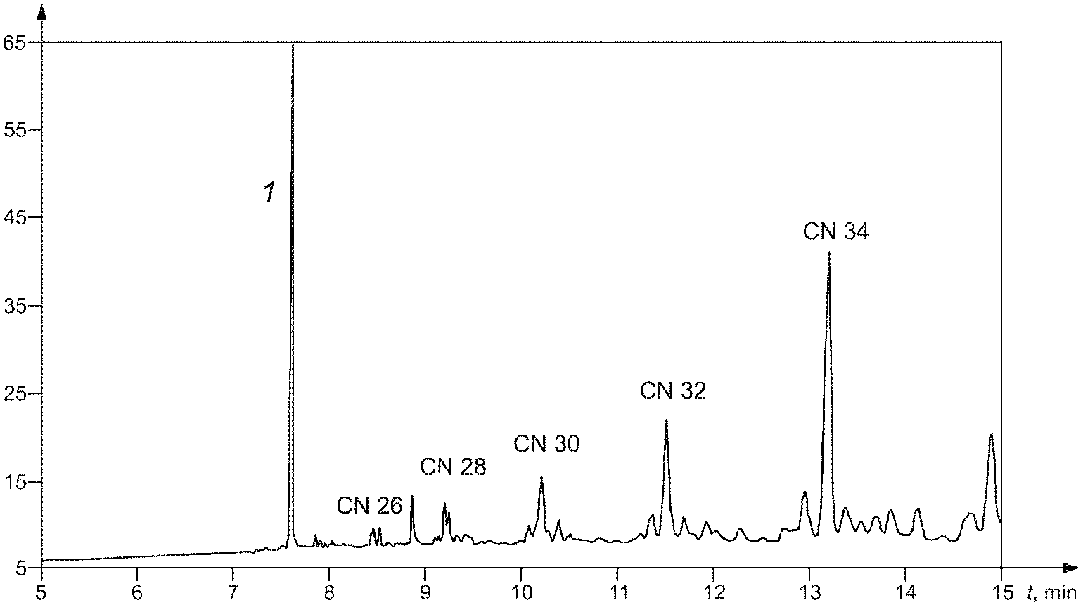 CN 26 до CN 34 | группы пиков соответственно числу атомов углерода |