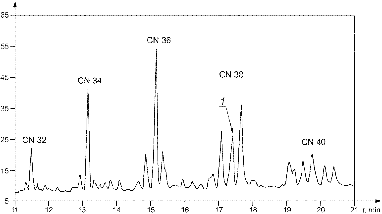 CN 32 до CN 40 | группы пиков соответственно числу атомов углерода |