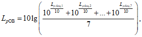 Следует определить среднее значение уровня звукового давления для семи точек измерений. Величину LpOB рассчитывают как энергетическое среднее семи измеренных эквивалентных уровней звука по формуле