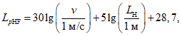 LpOB, уменьшенной на ослабление звука при распространении, рассчитываемая по формуле