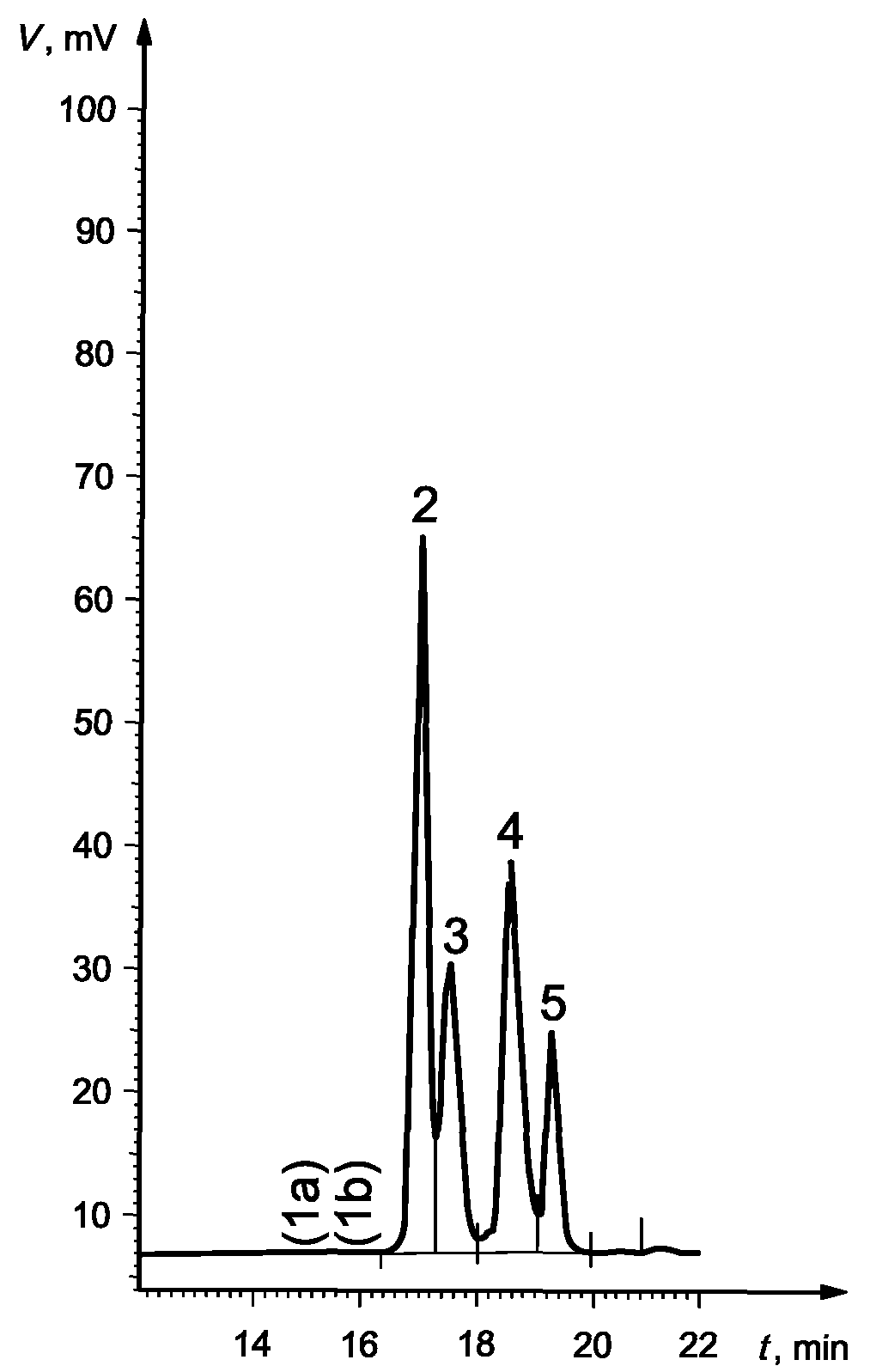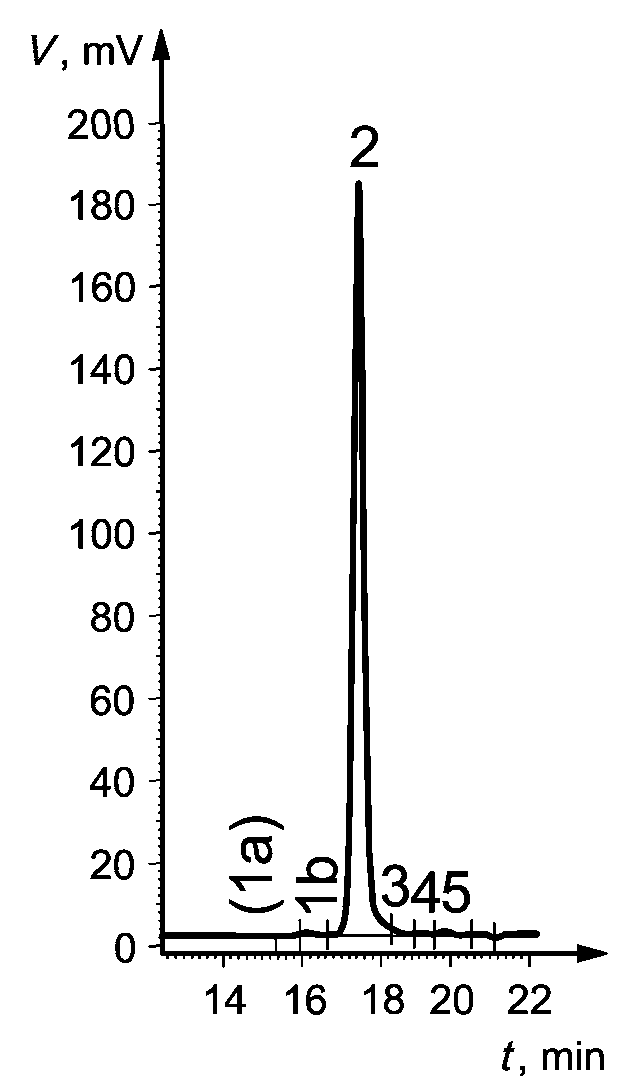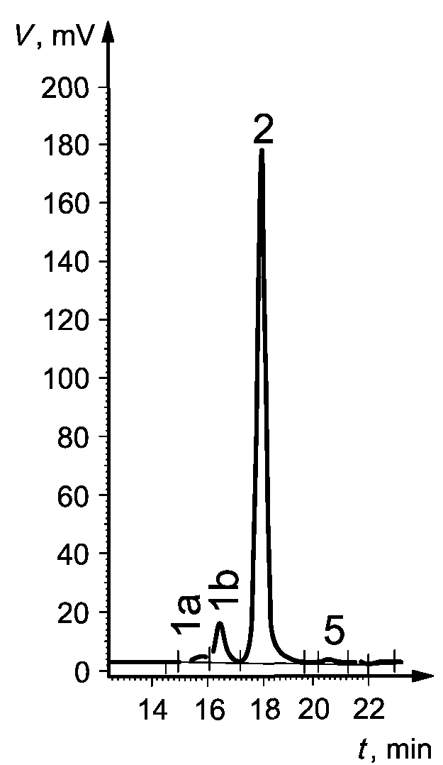 Хроматограмма определения показывает основной пик, характерный для мономерных TAGs (относительная молекулярная масса около 900), и один или несколько меньших пиков с более коротким временем удержания, характерных для PTAGs (димеры и высшие олигомеры).